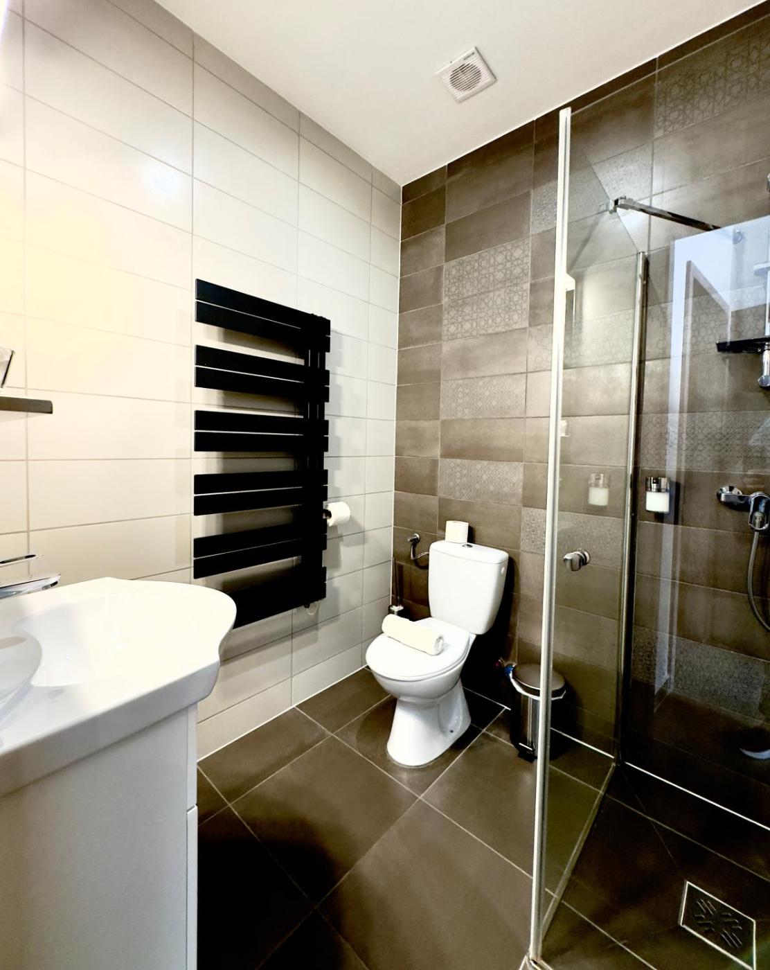 Deluxe Double Room with Shower. The double room provides a wardrobe, heating, as well as a private bathroom featuring a shower and a hairdryer. This double room features air conditioning, a private entrance, flat-screen TV with cable channels, as well as chocolate for guests. The unit offers 1 bed.